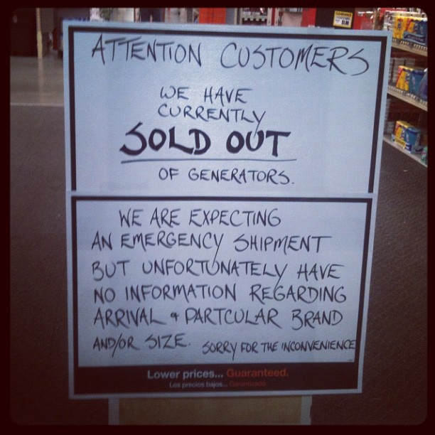 RT @ccalekna: No mo' generators in #RI #hurricane #sandy