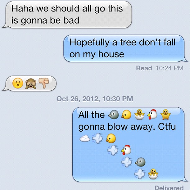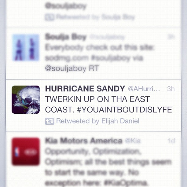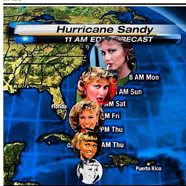 Lol Ohmygod you guys, I'm destroying the east coast #sandy #grease #thatonetimeiwasinaplay #hurricanesandy