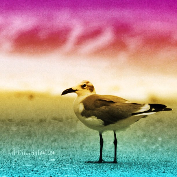 Mr. Seagull is watching the #ocean #waves from #hurricane Sandy
