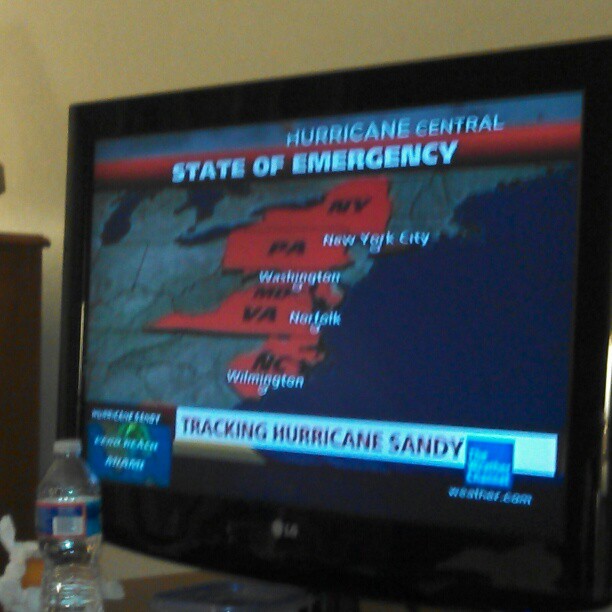 The 11pm news freaked me out. And there's no more bottled water at Kroger. #rvasandy #frankenstorm