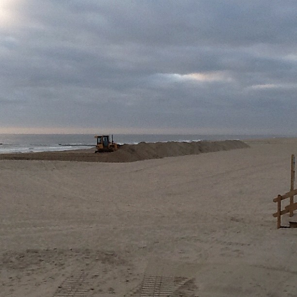 Spring Lake NJ adding temp dunes for #sandy #frankenstorm @ Spring Lake Beach